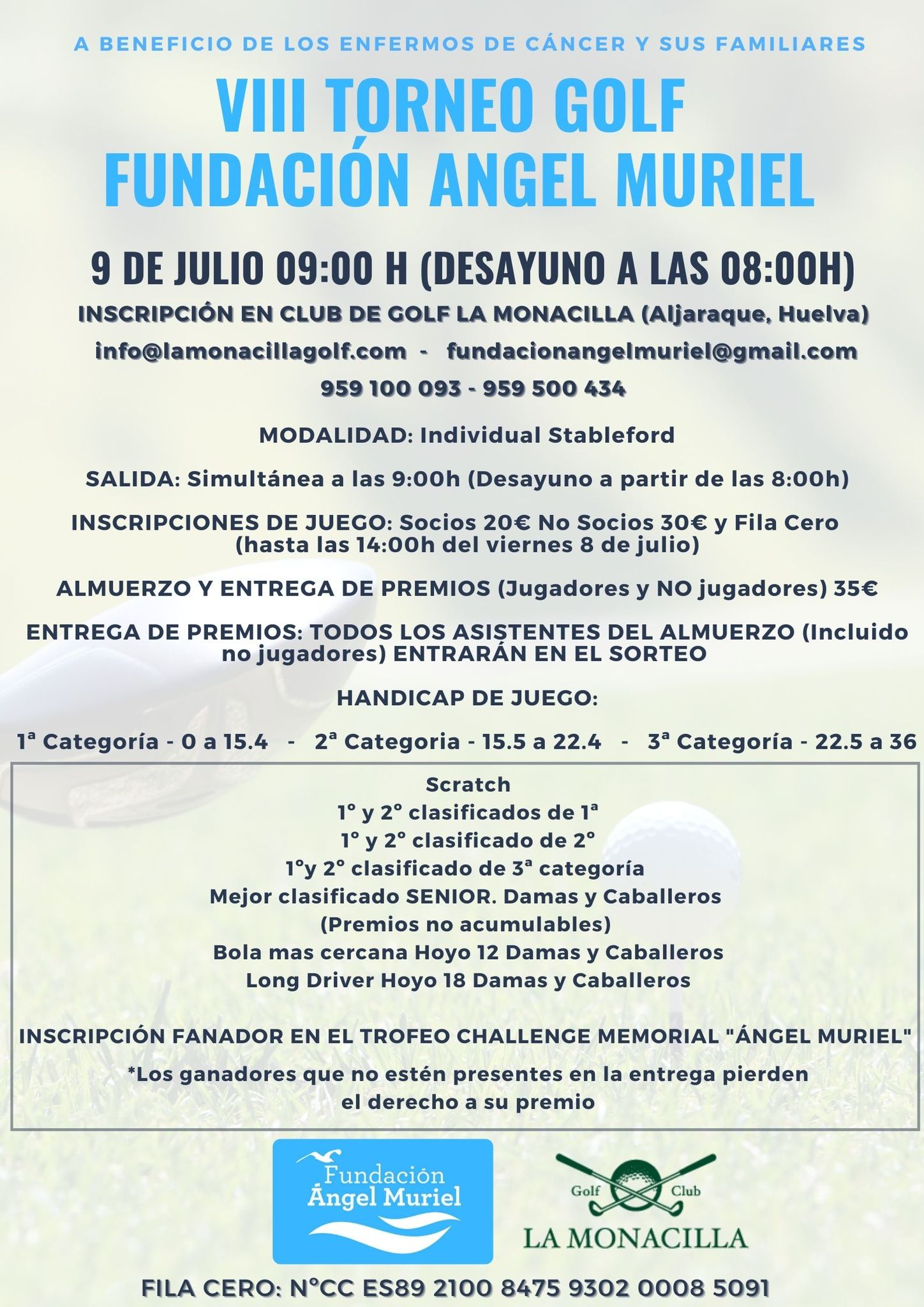 Gran éxito del IX Torneo benéfico de Golf “Fundación Ángel Muriel” celebrado en la Monacilla Golf Club de Aljaraque – Huelva